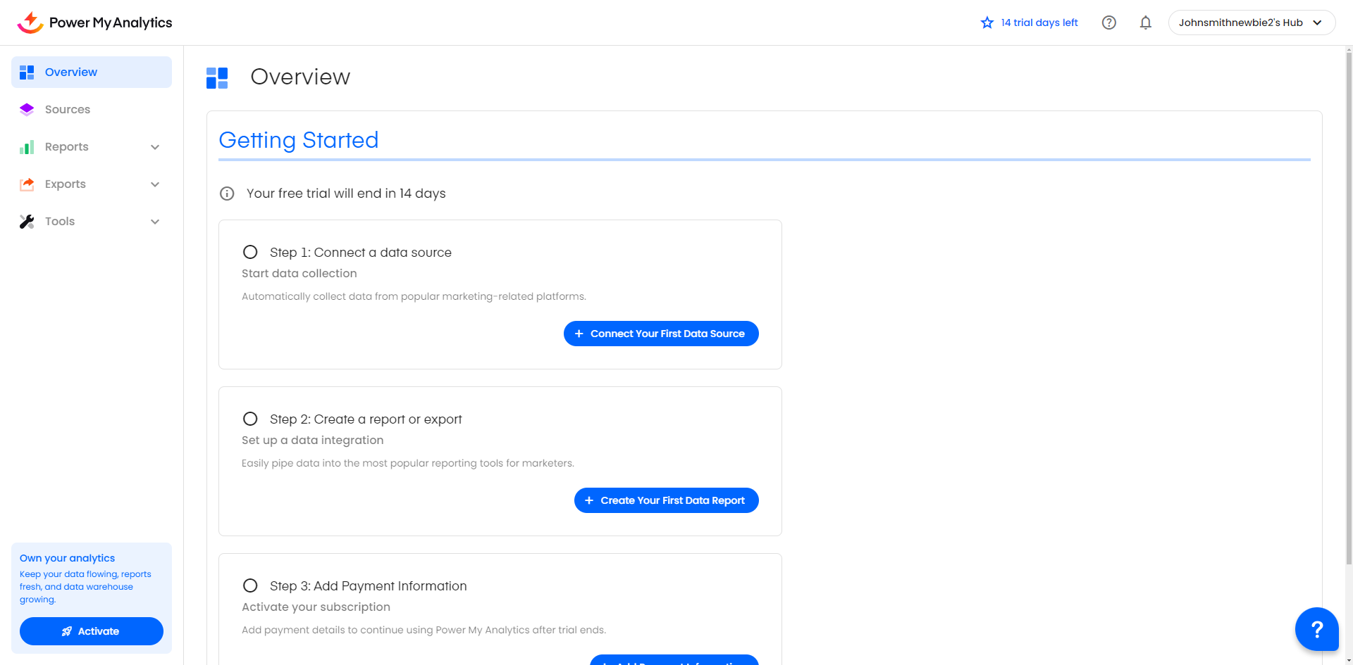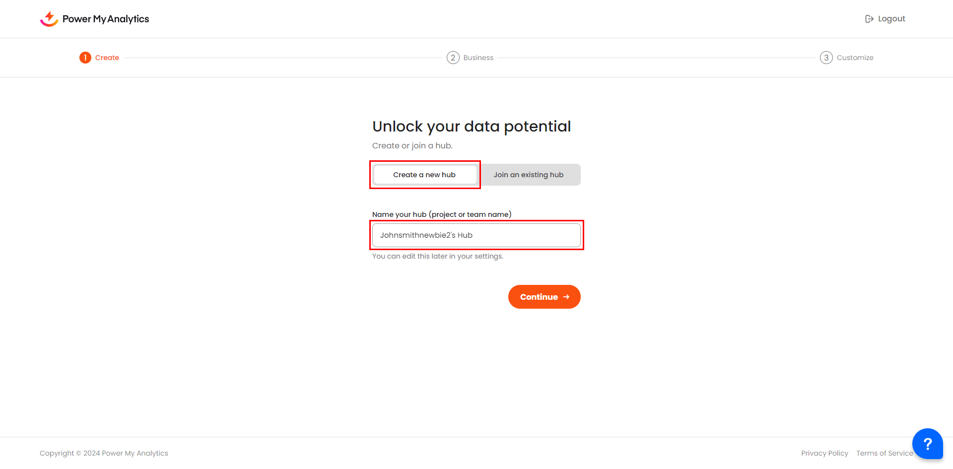 Now that you're signed up, it's time to create your Power My Analytics hub: