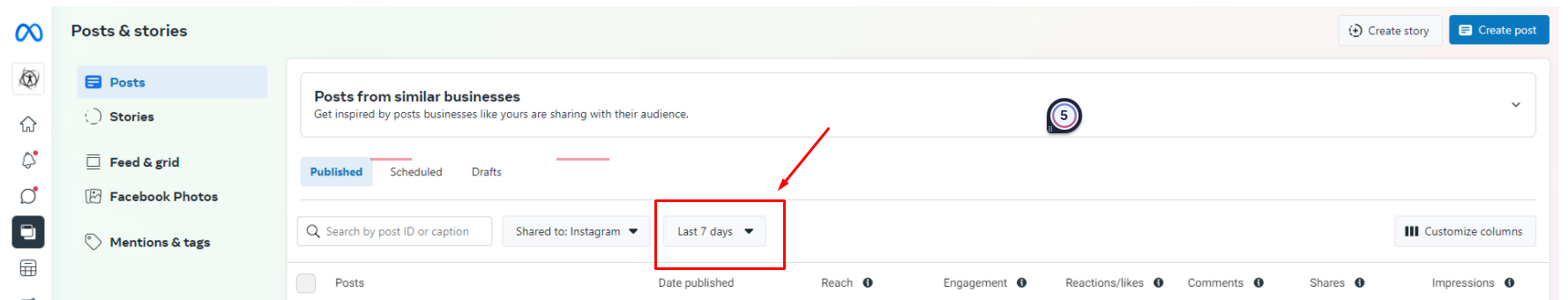 A screenshot of the Meta UI showing the option to select a date range for reports.