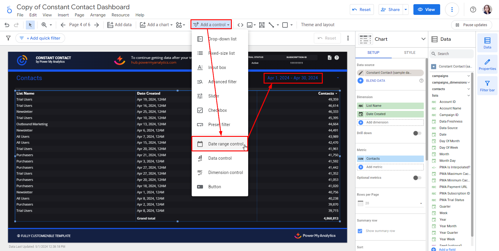 If you are using Looker Studio, add a date control to the top of your page to make sure each of your charts shows the same date range.